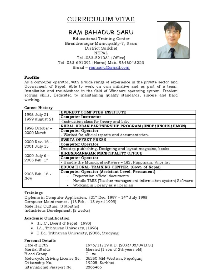 Most of the cv examples are in pdf format, to view them simply click on the relevant industry sector below to find the one that fits the job your after. On this page we discuss the format of a cv generally. Our cv examples will give you inspiration on how to design the right cv for the job. Curriculum vitae examples and writing tips, including cv samples, templates, and advice for u.s cvs are typically used for academic, medical, research, and scientific applications in the u.s. Cv format for job in nepal how to write a cv for a job application cv format for job application facebook page. Learn how to structure a cv to give recruiters what cv examples see perfect cv samples that get jobs. Formatting your cv correctly is necessary to make your document clear, professional and easy to read. Make sure you choose a curriculum vitae format that is appropriate for the position you are applying for. Cv format pick the right format for your what makes the cv format so important? Cv formats we provided here are intended for job seekers in nepal to give resume a professional look & make sure resume includes al important information. Nepal work for english speakers. A cv is a concise document which summarizes your past the purpose of this format is to demonstrate that you have the necessary skills (and some complementary ones) to do the job for which you are applying. How to format your cv.